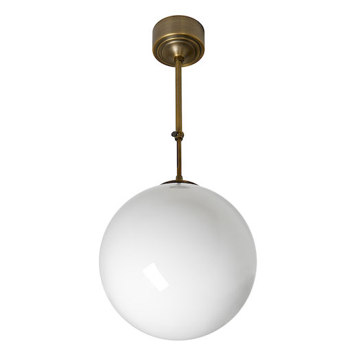 Klassinen opaalilasipallovalaisin säädettävällä antiikkimessingin värisellä varrella. Valkoinen opaalilasi antaa valon hyvin ja tasaisesti läpi ja pallokuvun sisään voi laittaa...