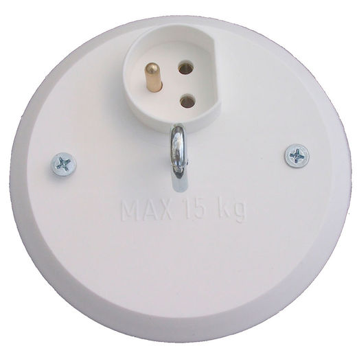 Valaisimen ripustuskansi maadoitetulla pistorasialla. Kansi käy upporasian päälle.