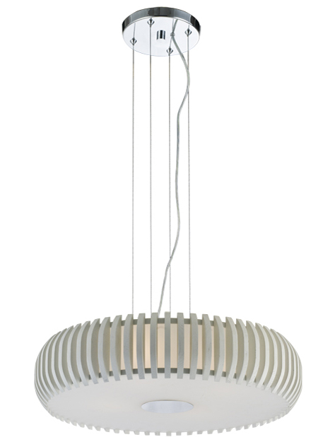 Moderni ja hyvin valaiseva riippuvalaisin. Sopii hyvin skandinaaviseen sisustukseen. Halkaisija 50 cm Valaisinosan korkeus 12 cm, vaijerin ja johdon pituus 2 m. Materiaalit: Vaijeri, kromi, matta lasi ja valkoinen puu. Helppo koukku- ja pistotulppakiinnitys, vaijereiden pituus on säädettävissä. Voidaan säätää hyvin lyhyeenkin vaijeriin. 4 x E27 max 40W, ei sisälly. Yhteensopivat tuotteet välilehdeltä löydät sopivat polttimot valaisimeen.