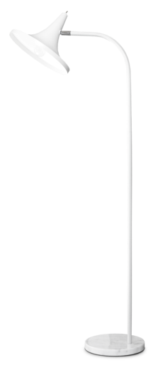 Laura Väreen suunnittelema Lakki- lattiavalaisin on tyylikäs, hauska ja funktionaalinen. Valkoinen teräsrunko yhdistyy hauskasti muotoiltuun Lakin-muotoiseen metallivarjostimeen, joka antaa huoneelle keveyttä ja muistuttaa leikkimielisyydestä. Valaisin sopii yhtä hyvin työ- tai yöpöydän viereen tai olohuoneeseen nojatuolin viereen antamaan kohdevaloa. Marmorijalusta tekee valaisimesta tukevan ja antaa tyylikkään sekä arvokkaan vivahteen. Varjostinta voi suunnata eri suuntaan nivelen ansiosta. Kuvun halkaisija 32 cm Valkoinen tekstiilijohto 1,8 m. Korkeus 150 cm 1 x E27 max 42W, ei sisälly. Katkaisija ylhäällä varjostimen päällä.