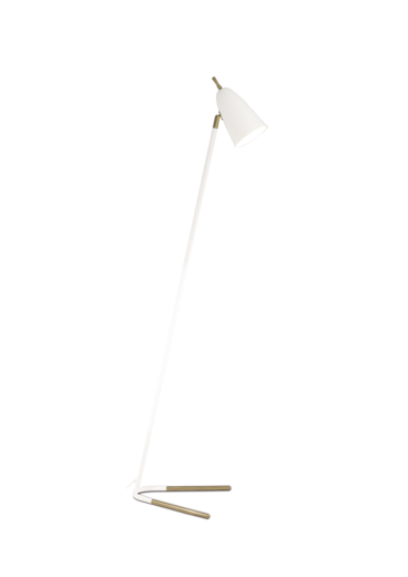 Modernisti muotoiltu, kevytlinjainen lattiavalaisin tuo elegantisti lisävaloa tarvittavaan kohteeseen. Mattavalkoinen metallirunko messinginvärisillä yksityiskohdilla. Varjostinta voi suunnata eri suuntiin ja valaisimeen saa laitettua tarvittaessa tehokkaankin lampun. Korkeus 150 cm Leveys 35 cm Syvyys 30 cm 1 x E27 max 40W, ei sisälly. Katkaisija johdossa, johdon pituus 1,8m.
