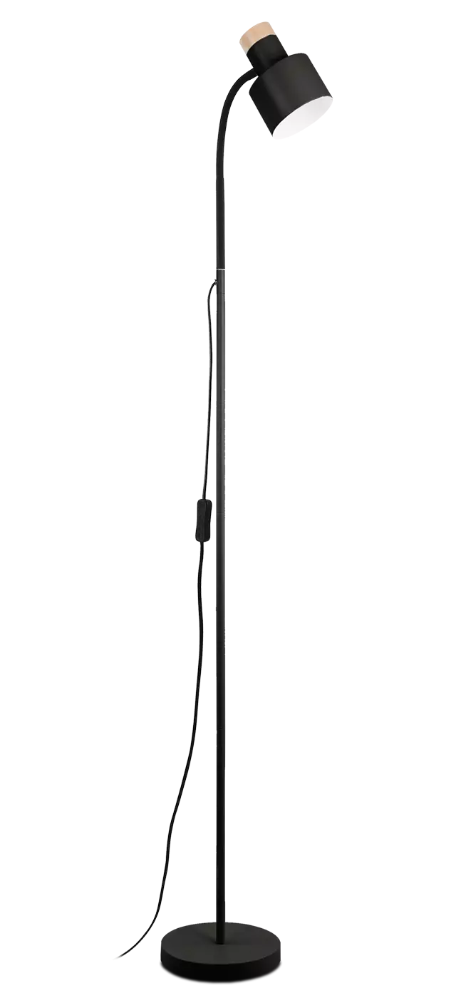 Ciel lattiavalaisimella saat kätevästi lisävaloa ja työskentelyvaloa eri kohteisiin. Valkoinen tai musta metallirunko ja vaalea puusomiste tuo skandinaavisen lisän ulkonäköön. Valaisimen varressa on taipuisa kohta, josta valoa voi suunnata haluttuun kohtaan. Johto ja taipuisa kohta ovat aina mustia ja molemmissa runkoväreissä on vaalea puu somiste. Johto kulkee rungon ulkopuolella ja kytkin on johdossa. Painolaatan halkaisija 30 cm Korkeus 157 cm 1 x E27, ei sisälly.
