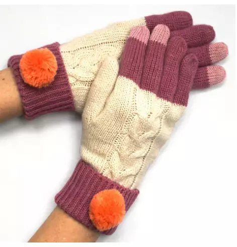 Kaunis Pom pom -palloilla koristeltu, neulottu Loop huivi. Tumman harmaa huivi ja toisen reunan pallot ovat persikan ja vaalean sinisen langan sekoituksia. 100% akryyli Pituus 180 cm Leveys 20 cm...