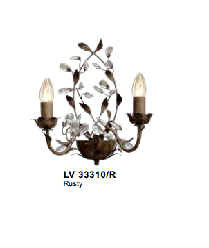 Kaunis seinävalaisin kristalleilla. Maalattu ruskea metallirunko 2xE14 40W (ei sis.) korkeus 37cm leveys 32cm etäisyys seinästä 17cm