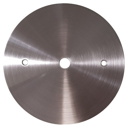 Johdon läpivientireiällä varustettu kestävä, metallinen peitelevy jakorasialle. Alumiinin värinen. Halkaisija 12 cm Kattorasian ruuvijaon rei'itys