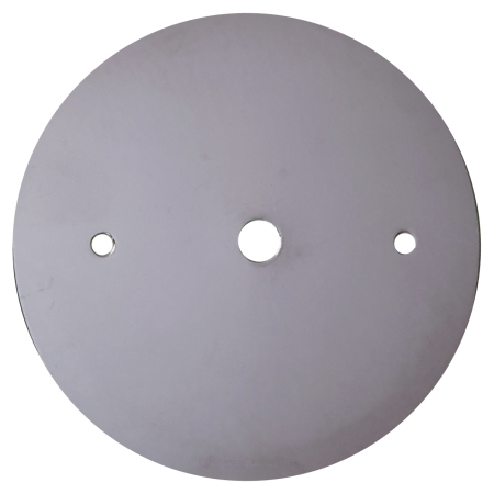 Johdon läpivientireiällä varustettu kestävä, metallinen peitelevy jakorasialle. Kromin värinen Halkaisija 12 cm Kattorasian ruuvijaon rei'itys