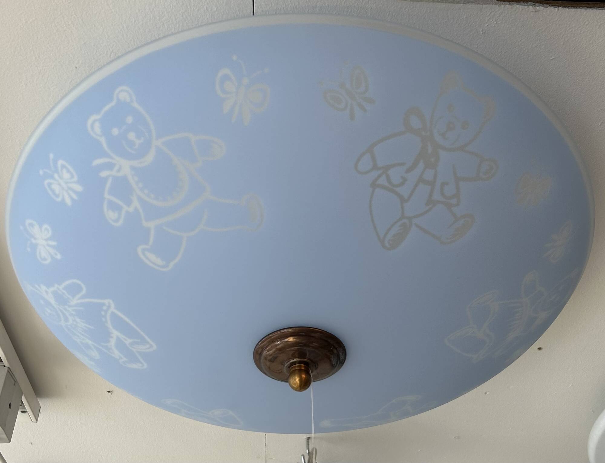 40cm lasiplafondi on kuvioitu nallekuvioilla. Keltainen, mattapintainen lasivarjostin. Koukku- ja pistotulppakiinnitys. 3 x E14 max 40W, ei sisälly. Halkaisija 40 cm Korkeus 16 cm...