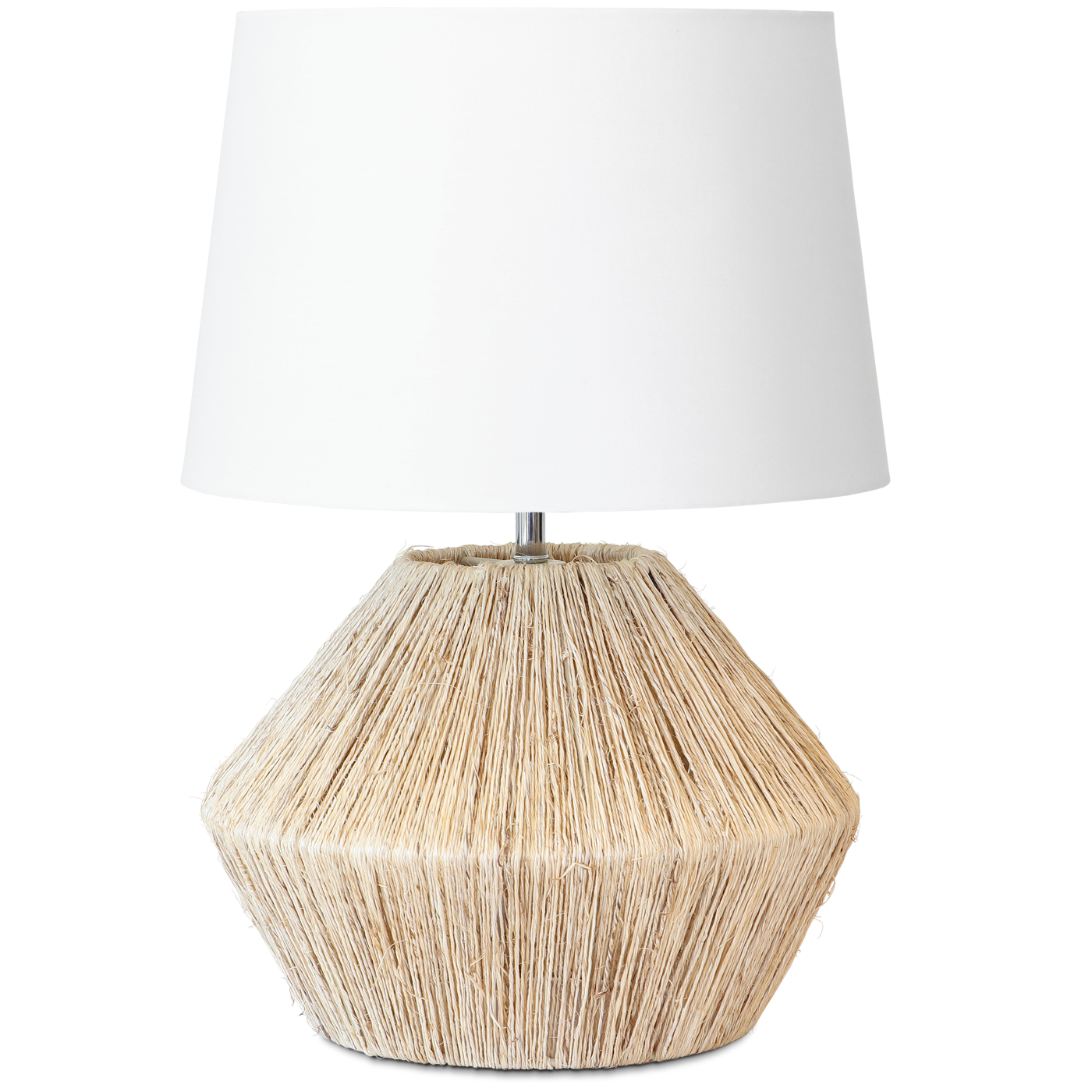 Vahvasta manilla-kuidusta valmistettu jalka antaa näköä ja kokonaisuuden rauhoittaa valkoinen kangasvarjostin.
