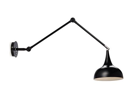 Tällä seinävalaisimella on ulottuvuutta. Sopii hyvin paikkoihin, joissa ei voi työvaloa kiinnittää kattoon tai laittaa pöydälle. Kolmesta nivelestä liikkuva varsi. Matta musta väri. Kangaspäällysteinen musta liitosjohto (cm):200 Katkaisija rungossa 1xE14 40W (ei sisälly), kaikki lampputyypit käyvät tähän valaisimeen. Syvyys (cm)90 Korkeus (cm)37 Leveys (cm)20