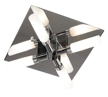 Tyylikäs, moderni plafondi kosteaan tai kuivaan tilaan. Valaisimesta saa tasaisen yleisvalon. Valkoinen lasi, kromi metalli. Kiinteä asennus. Kosteusluokitus IP44 4X40W G9 (sisältyy), halogeenin voi korvata myös ledillä. Korkeus 10 cm Leveys 30 cm
