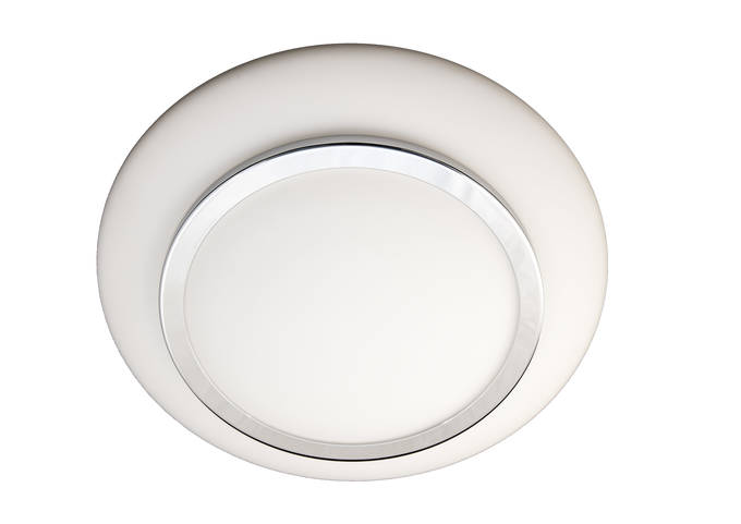 Tyylikäs plafondi eteiseen tai kylpyhuoneeseen. Valaisin sopii sekä kuivaan että kosteaan tilaan. Kahdesta lampusta, varsinkin led-lampuilla, saa aikaan hyvän yleisvalon. Valkoinen lasikupu, metallipohja ja krominvärinen metallisomiste. Kotelointiluokka IP44 Halkaisija Ø 30 cm 2 x E27 max 60W, ei sisälly, suosittelemme led-lamppuja. Kiinteä asennus. Lasi on kiertämällä kiinni pohjassa.