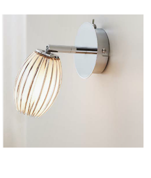 Tentacle mini -seinävalaisin Valkoinen lasi ja kirkas akryyliliuska, kromi -runko Katkaisija rungossa Etäisyys seinästä 18cm Varjostimen halkaisija 7,5cm 1xG4 35W (sis.)
