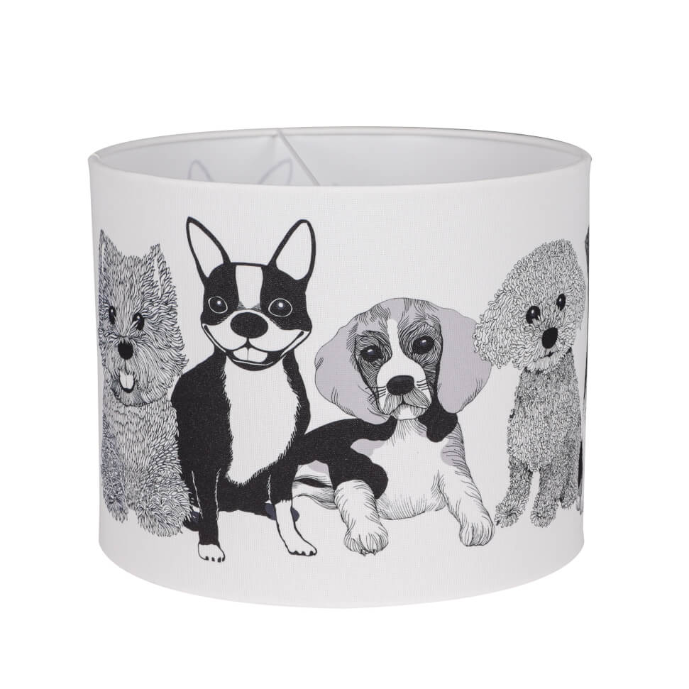 Kangaspintainen varjostin on päällystetty Vallilan Doggies-kuosilla. Doggies - kuosin on suunnitellut Tanja Orsjoki. Ihastuttavassa Doggies-kuviossa erinäköisiä koira ystävyksiä....