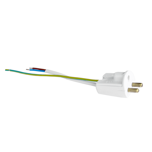 Valaisinpistotulppa johdolla, yhdistetään sokeripalalla valaisimeen tai ripustusjohtoon. 3-napainen N (sininen), L (ruskea), maadoitettu (keltavihreä) pituus noin 15 cm väri valkoinen Maadoitusjohto on riisuttavissa tulpasta pois, jolloin valaisintulpasta tulee 2-luokan tulppa.