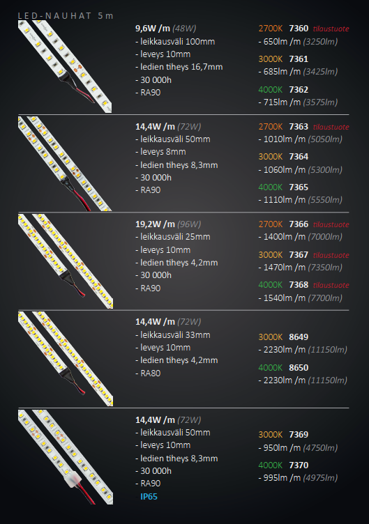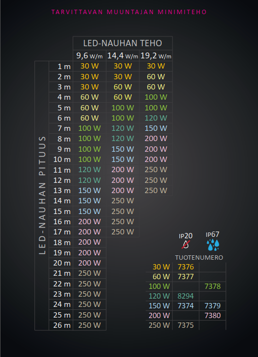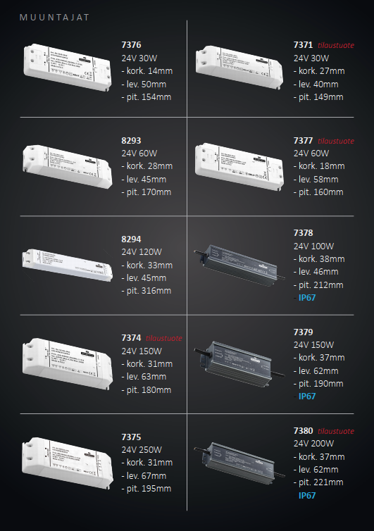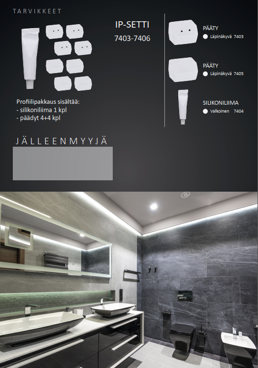 | IP24 | Saunat (yli 1 m lattiasta lisäksi lämmönkestävyys 125 °C). |