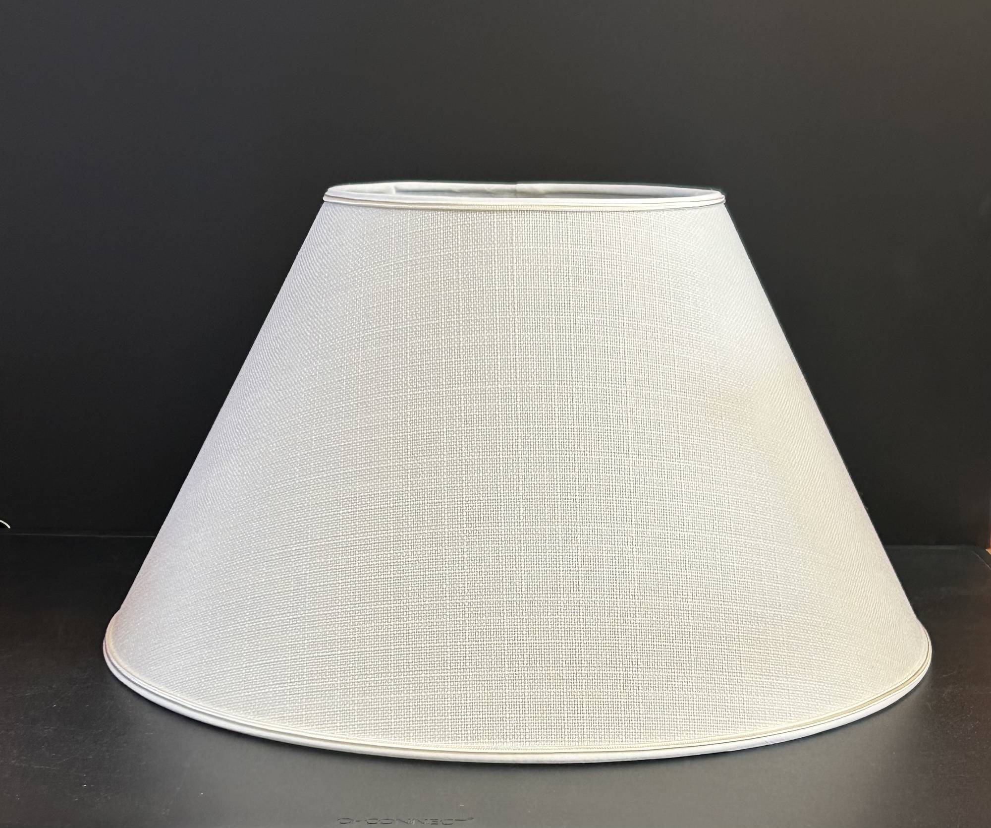 Luonnonvalkoinen pellavakangas läpinäkyvän kovikemuovin päälle laminoituna. Varjostimen alahalkaisija 40 cm Varjostimen ylähalkaisija 18 cm Viisto korkeus 24 cm Varjostimessa kiinteä E27 kantaan käyvä pidin. Kotimainen varjostin on valmistettu Kouvolassa. Tarvittaessa varjostinta saa erilaisilla kiinnitystavoilla ja kankailla. Kysy lisää myymälästä!