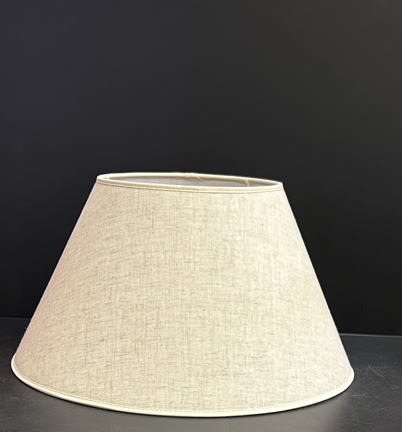 Varjostin, jossa on kangas kovikemuovin päälle laminoituna. Varjostimen alahalkaisija 40 cm Varjostimen ylähalkaisija 35 cm Viisto korkeus 28 cm Varjostimessa kiinteä E27 kantaan käyvä pidin....