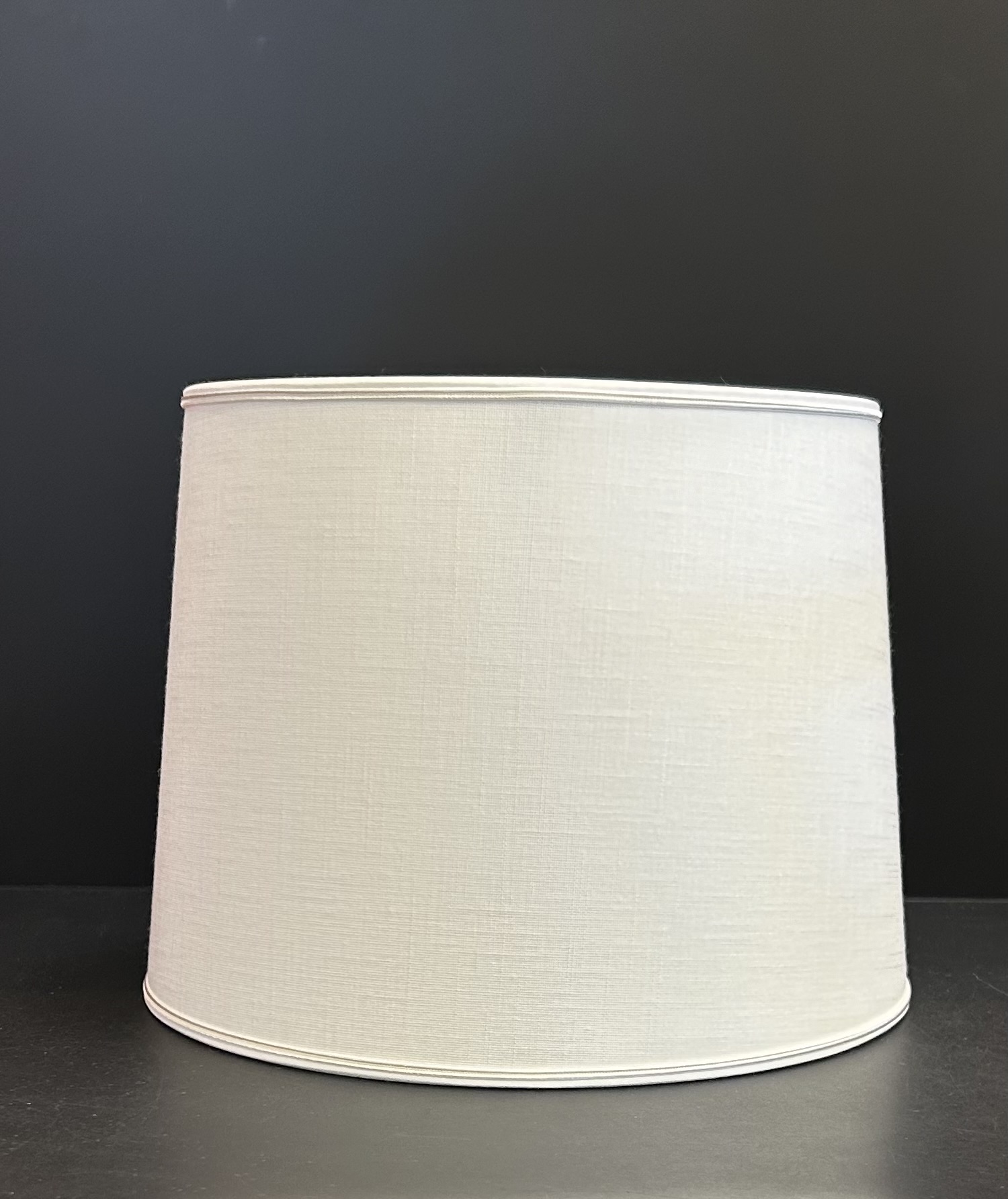 Varjostin, jossa on kangas kovikemuovin päälle laminoituna. Varjostimen alahalkaisija 40 cm Varjostimen ylähalkaisija 35 cm Viisto korkeus 28 cm Varjostimessa kiinteä E27 kantaan käyvä pidin....
