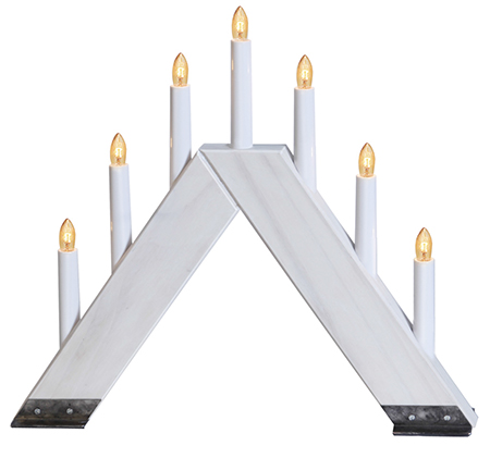 Viking A-mallinen puukynttelikkö Valkoinen, sisäkäyttöön. Leveys42cm Korkeus37cm 7x3W E10 34V (sis.), kokonaiskulutus 21W, hehkulamput ovat vaihdettavissa energiatehokkaisiin ledeihin. Katkaisijallisen johdon pituus180cm